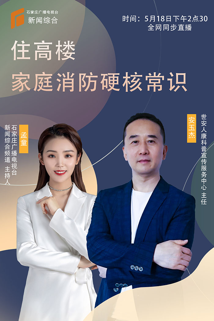 随着社会的发展,各种智能电气设备(不能人走电关)的增加,火灾因素也在不断的增加,火灾事故,特别是家庭火灾事故屡屡发生,严重影响着广大居民的生命和财产安全。针对当前的火灾状况,5月18日14:30,世安人康科普宣传服务中心的安玉杰主任,做客石家庄广播电视台新闻综合频道直播间,就广大居民关心的住宅消防问题做了详细讲解。