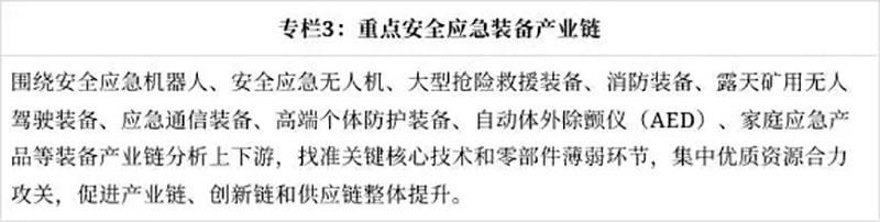 坚持重点推进。聚焦重点领域,发展重点安全应急装备,发挥龙头骨干企业在资金、技术、市场方面的优势,带动中小企业发展,形成大中小企业融通发展格局。