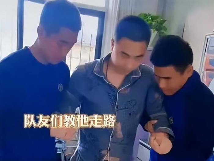 除了孙蕾和儿子照顾外,肃宁县消防救援大队还指派了队友轮流帮助库学辉进行康复训练。队员们每天都会到库学辉的家里陪他聊天和学习,帮助他练习走路。他们不厌其烦地与库学辉互动,一遍遍地教他识数和说话,有时还会带库学辉回到消防站,看看之前朝夕相处的消防车和战斗服,在库学辉进行高压氧治疗时,陪同的队员也会紧紧握着他的手。