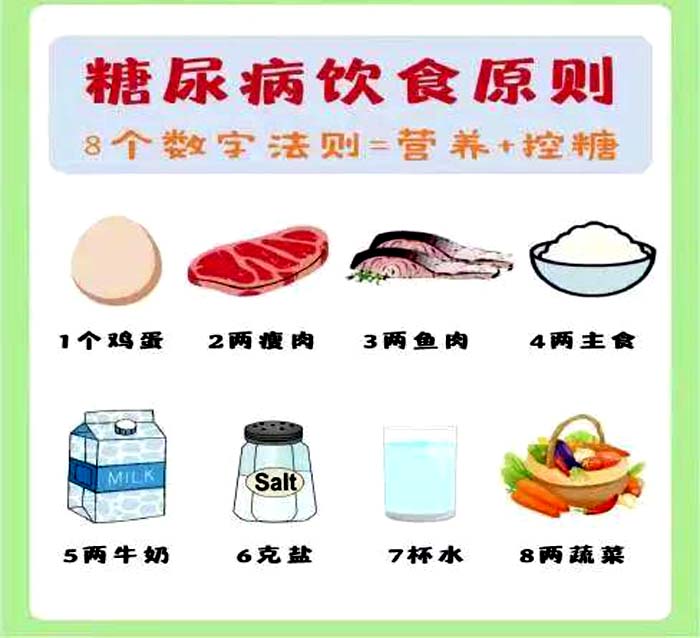 控制总热量,保证营养丰富,少盐少糖,少吃高热量高脂肪食物。一天的主食5~8两,少吃精加工食物,比如面包、糕点,尽量不吃稀饭、粥类、淀粉勾芡过的汤类。多吃绿叶蔬菜,每人每日至少一斤。每日一个鸡蛋、一盒牛奶、二两瘦肉。减少盐的摄入,每日盐的摄入量少于5g(约一啤酒瓶盖)。在烹饪的方法上尽量选择蒸、煮、炖、凉拌的方法,不推荐油炸、煎、红烧。